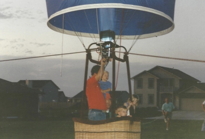 Gerald start flying hot air balloons in 1990. From time to time, he would inflate the hot air balloon on the grounds of local church, that was located down the street from his house. One day, he decided to give the neighbor kids a tethered ride in the hot air balloon, which included Alex. Gerald and Alex were neighbors for a couple years.