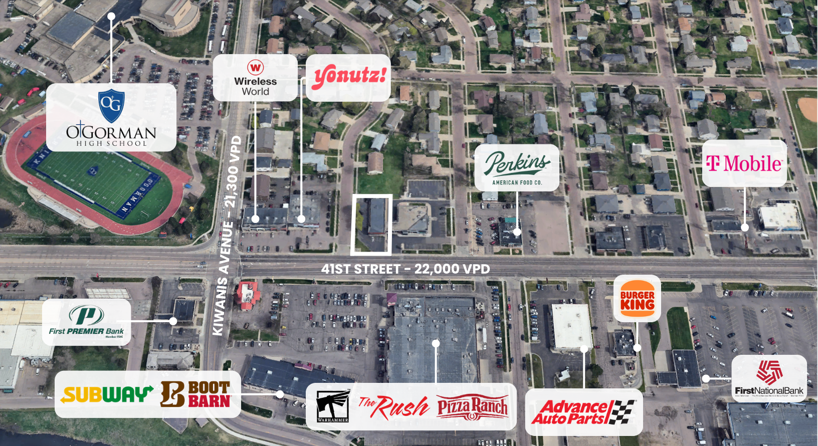 Prime location with high visibility along 41st Street near Kiwanis Avenue with a combined traffic count of 43,300 vehicles per day.