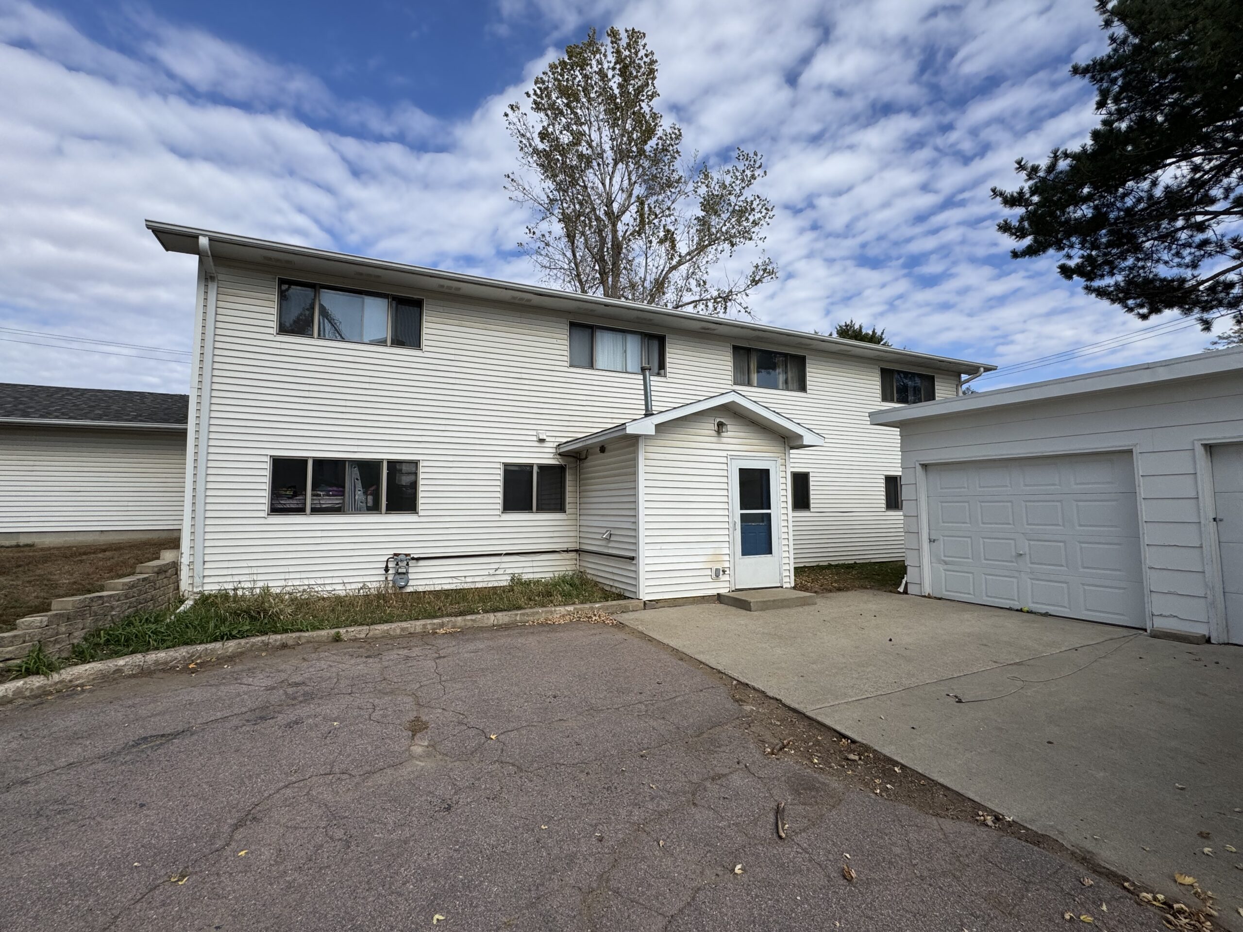 Two (2) fourplexes on adjacent parcels with shared detached garages.