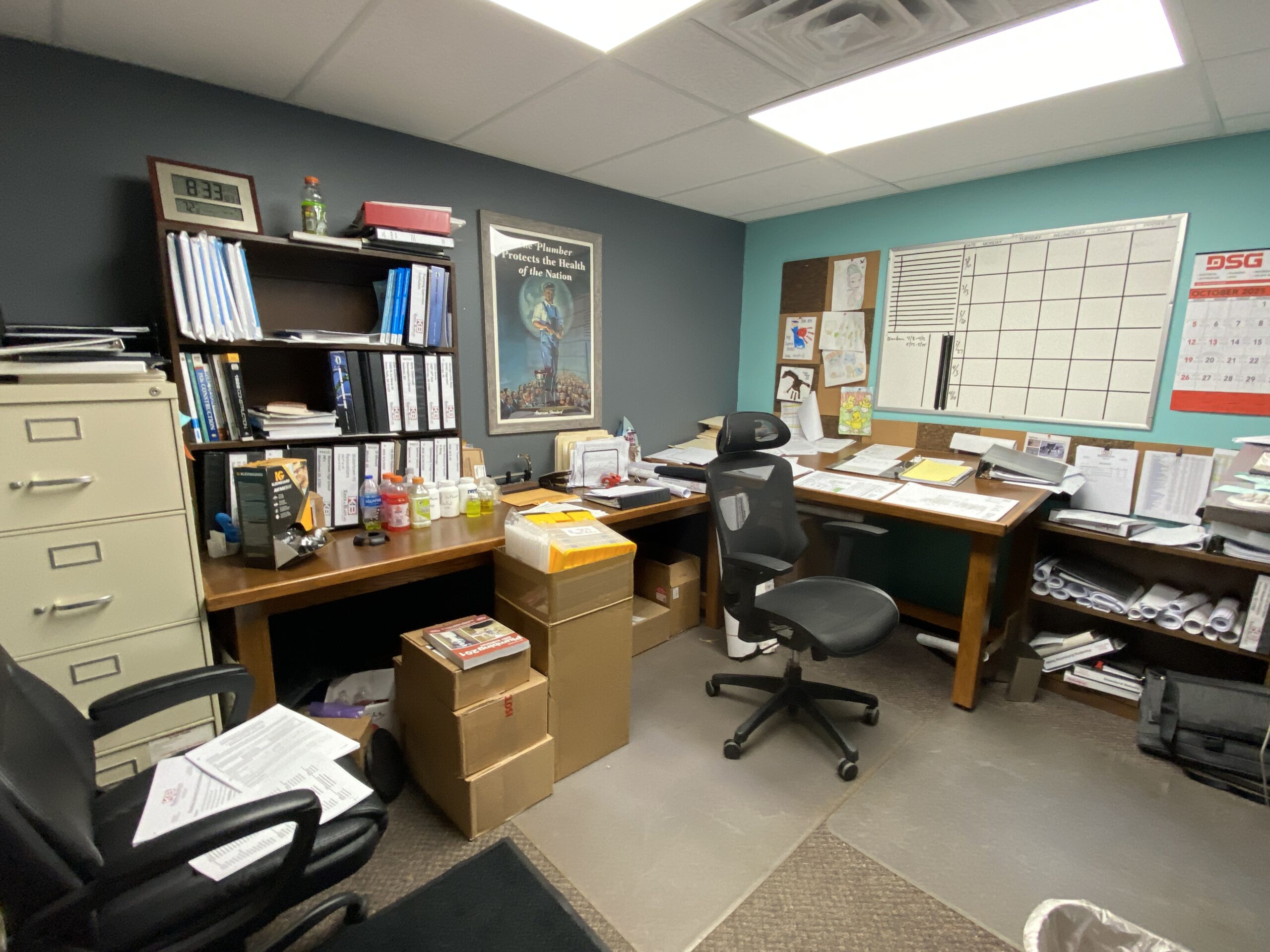 Office area includes reception, conference room, eleven (11) private offices, work areas, and restrooms.
