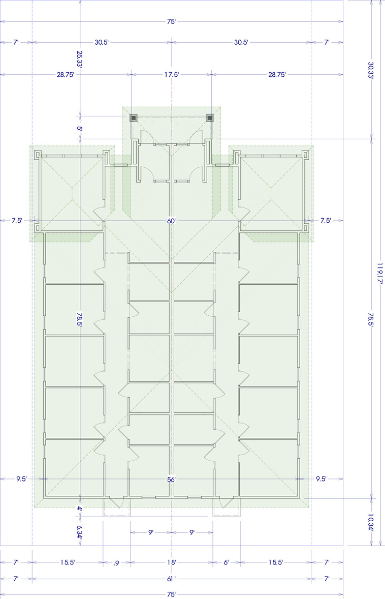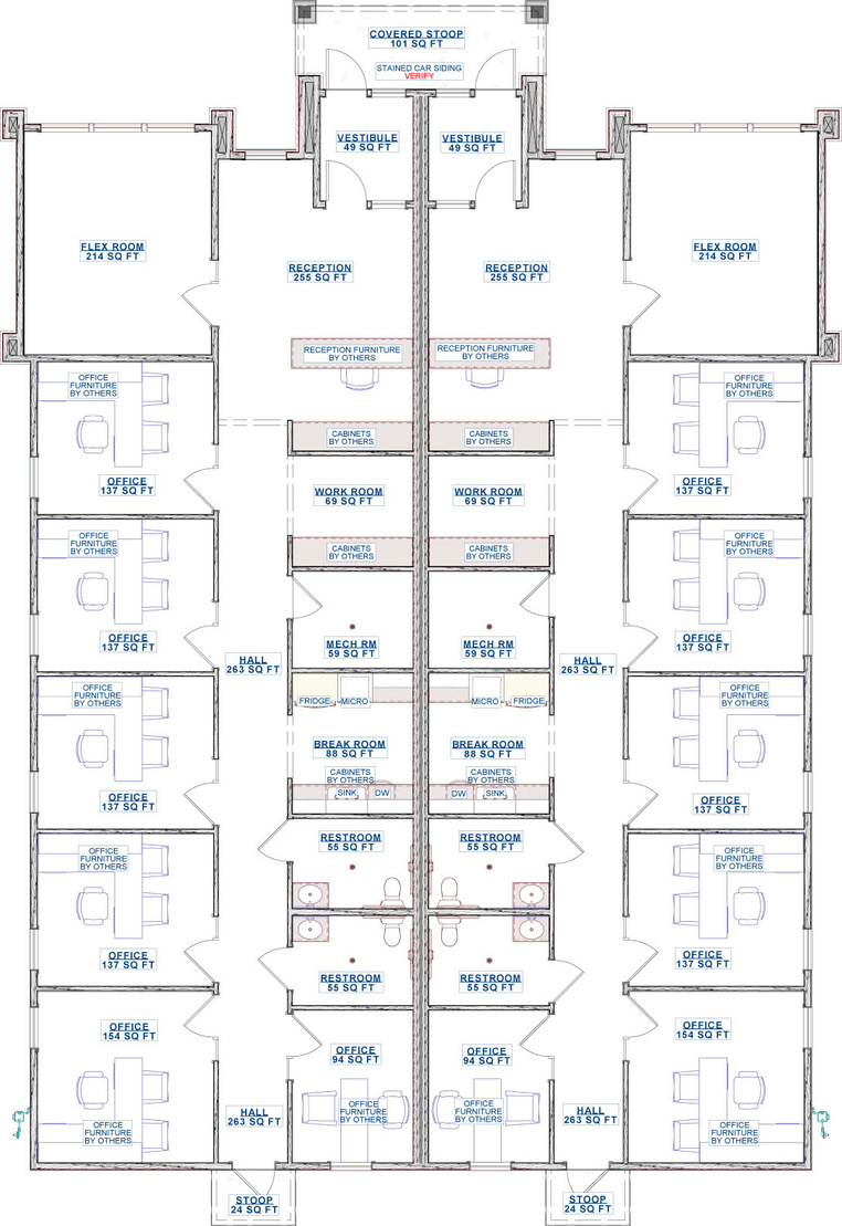 Duplex office building (4,200 SF) with two (2) units of 2,100 SF each.