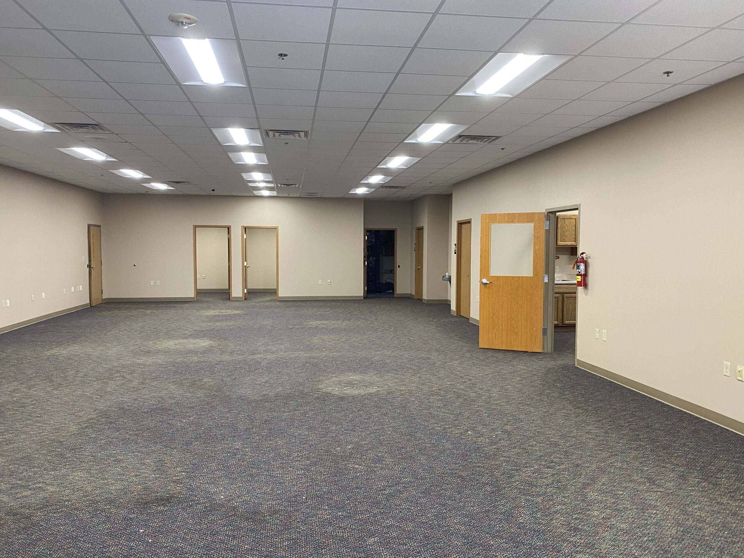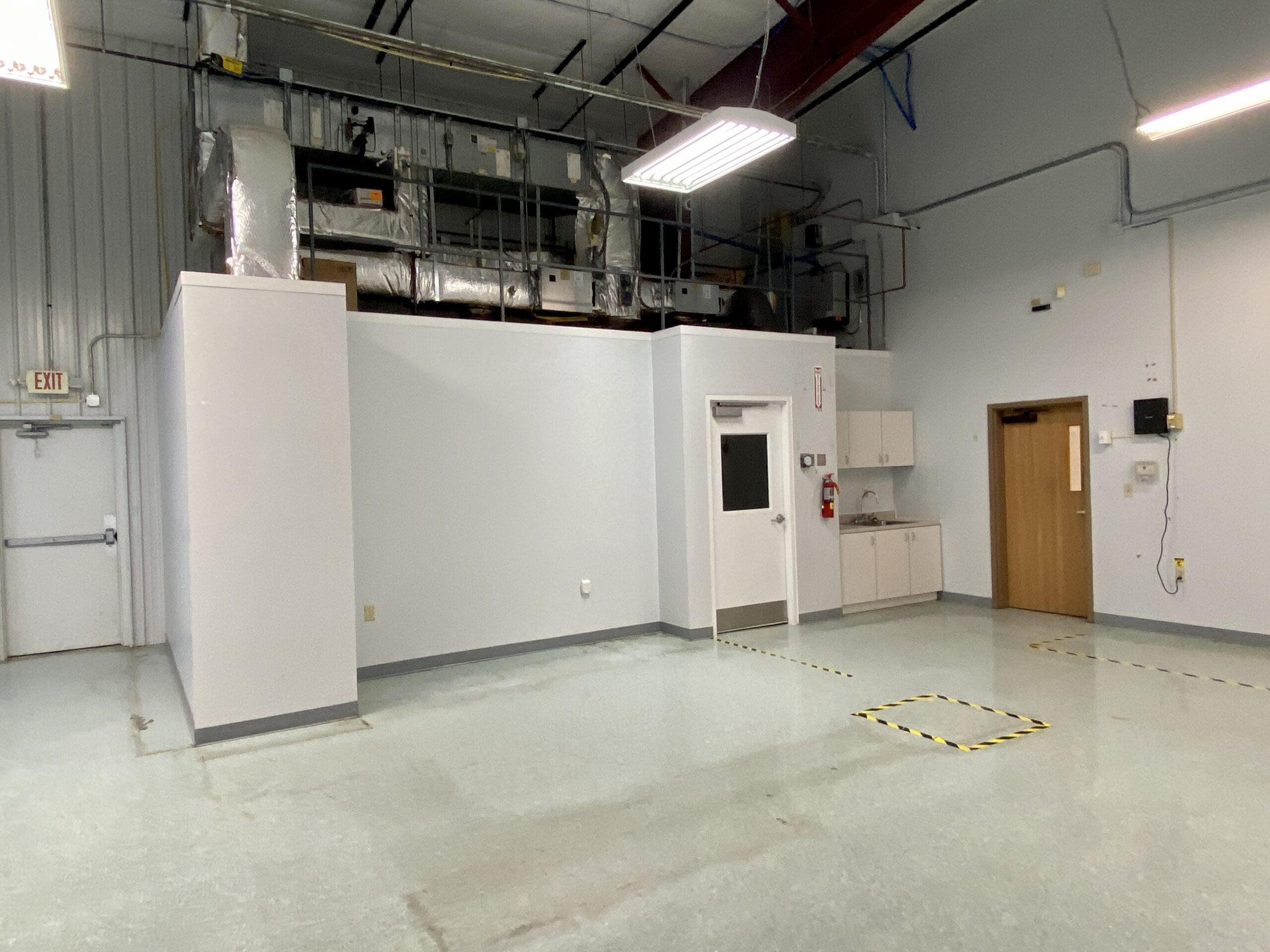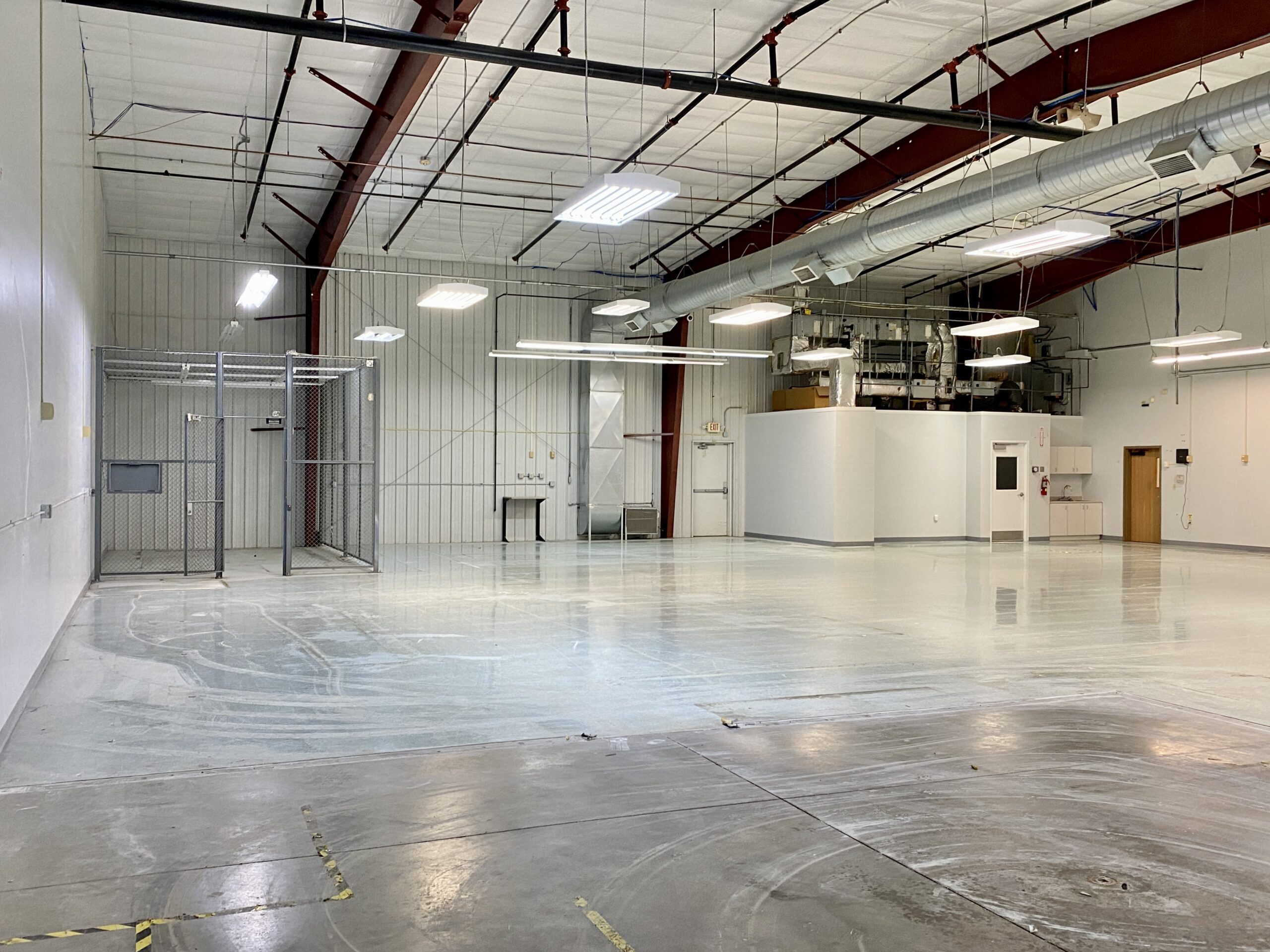 Three (3) private offices, reception area, conference room, breakroom, restrooms and open work area.