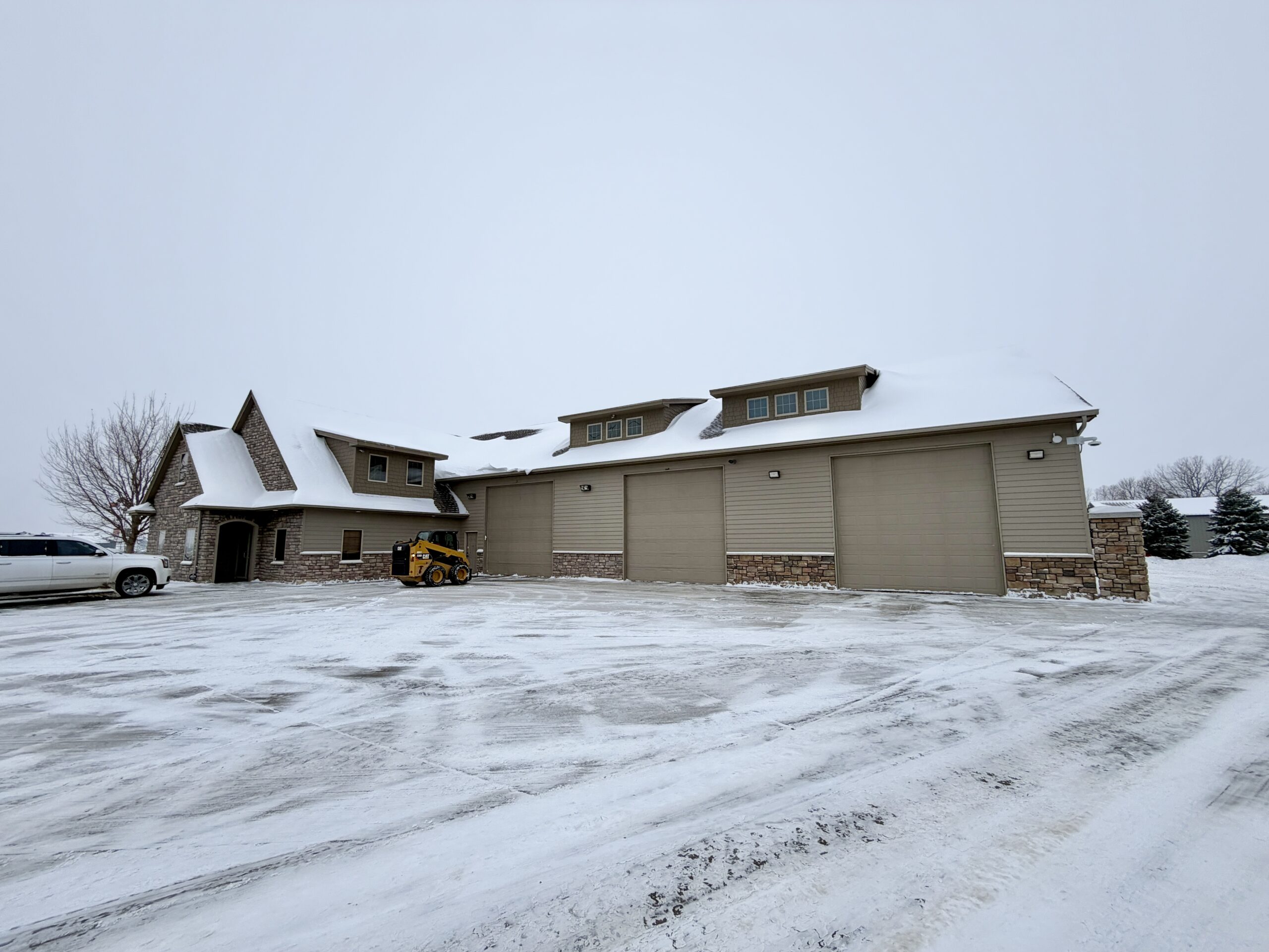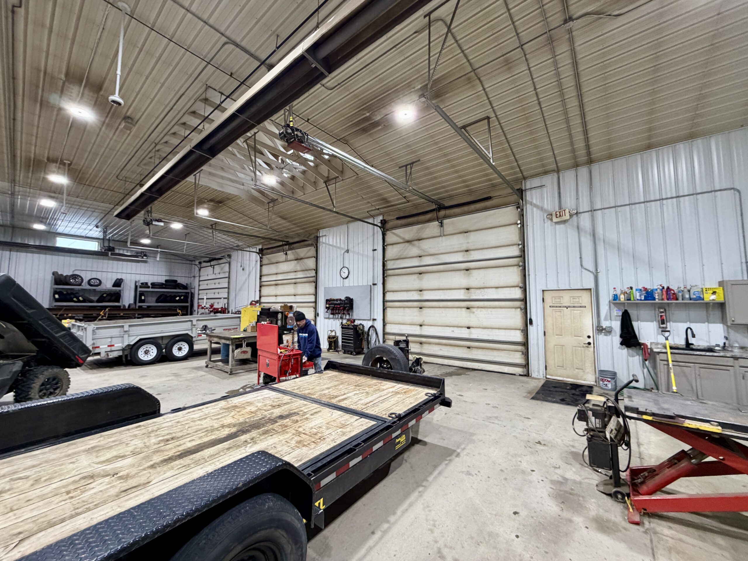 Warehouse has seven (7) 16’ overhead doors and three (3) drive-thru bays.