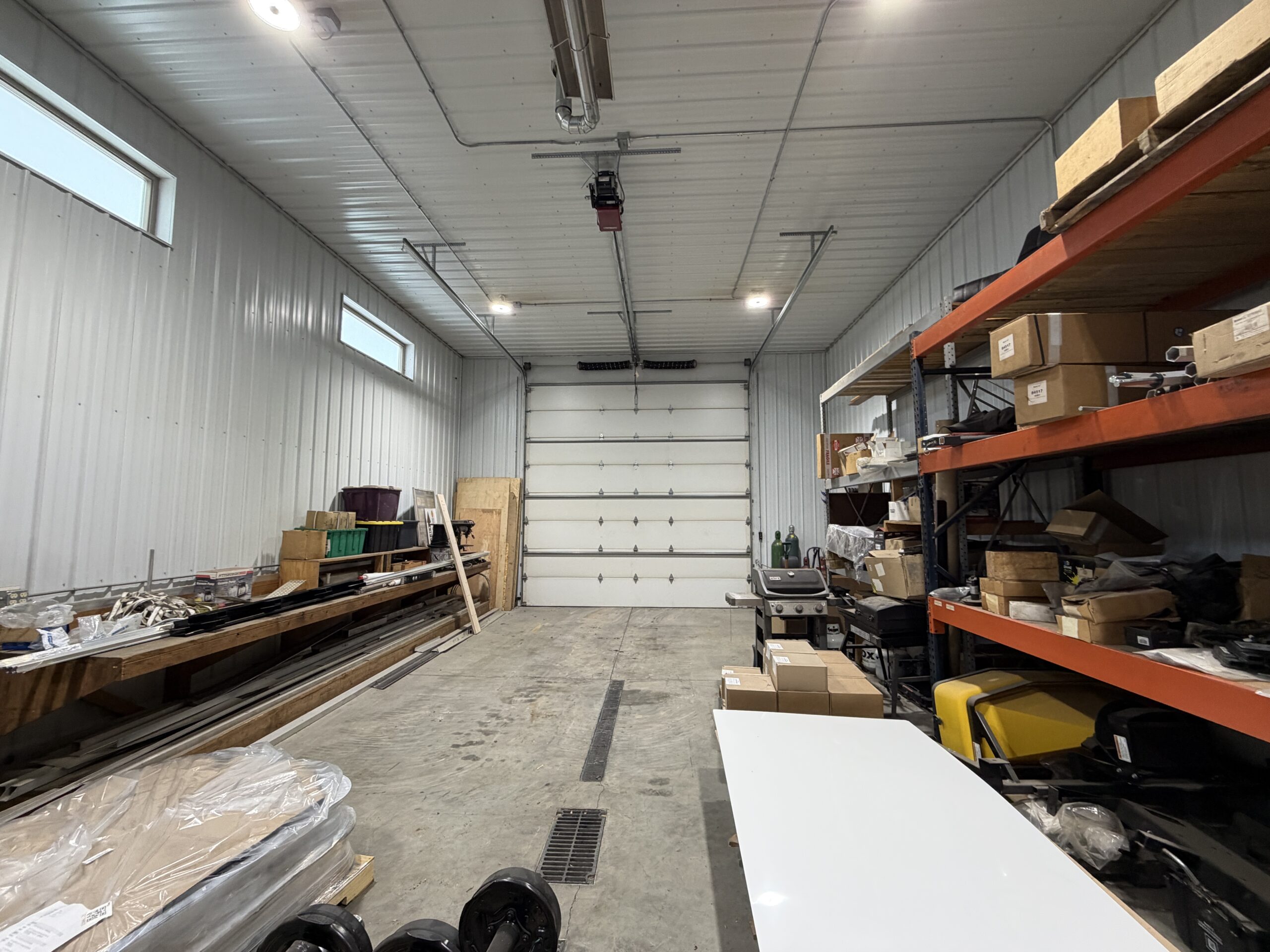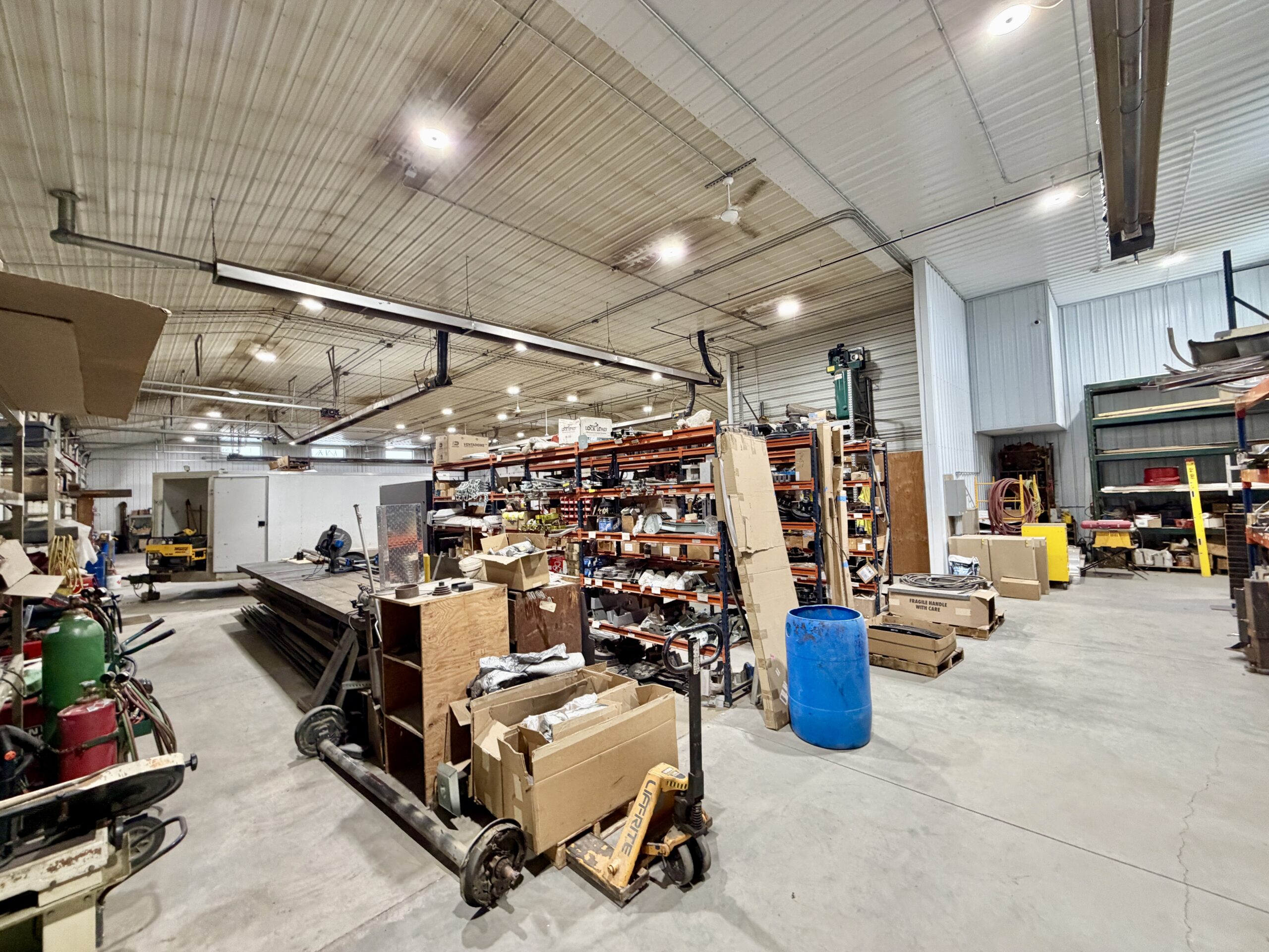 Warehouse features skylights, radiant heat, and floor drains.