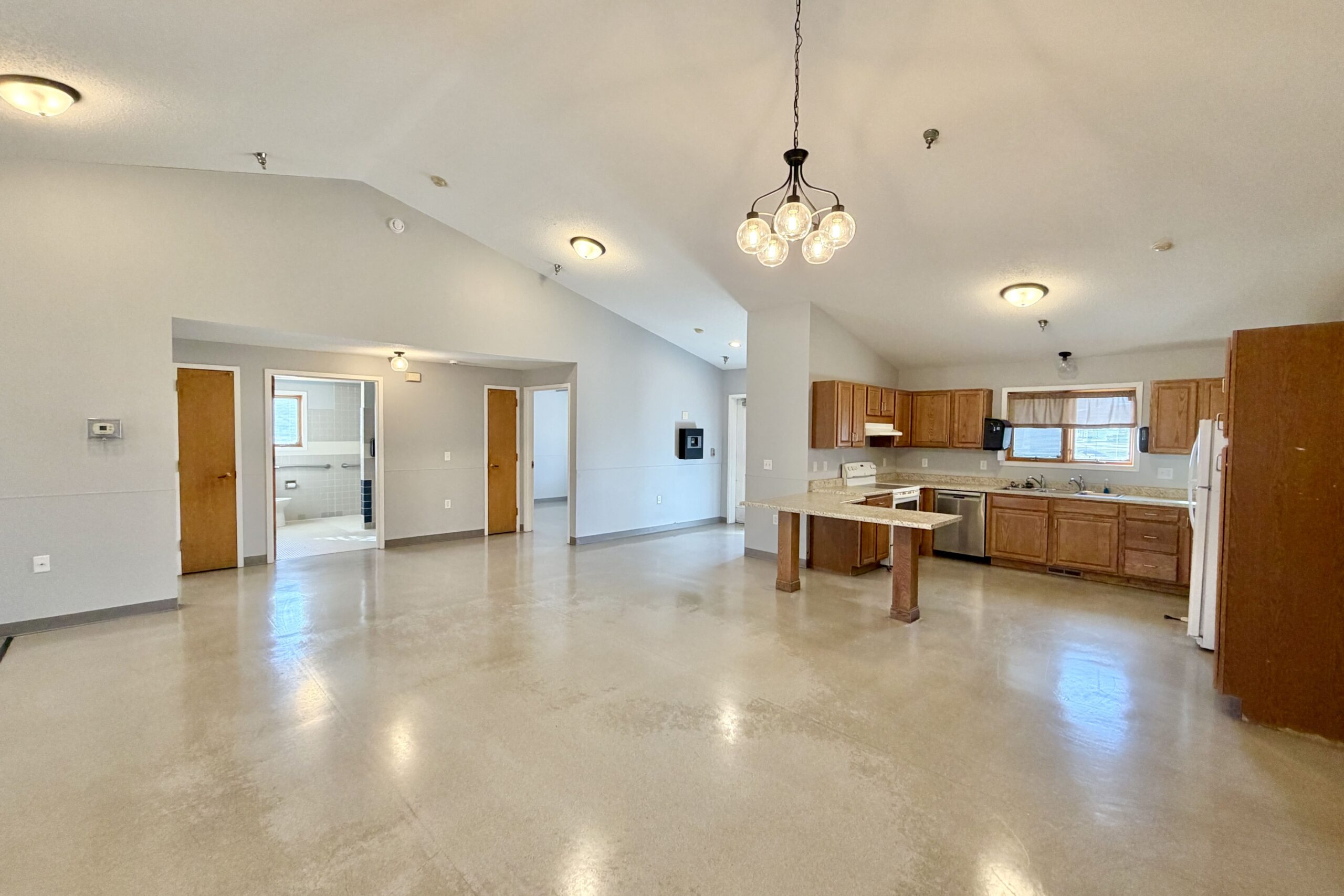 Entire structure is ADA compliant, contains four (4) bedrooms with large closets, large living and dining rooms, two (2) bathrooms and a large 750 SF garage with hanging Reznor heat.