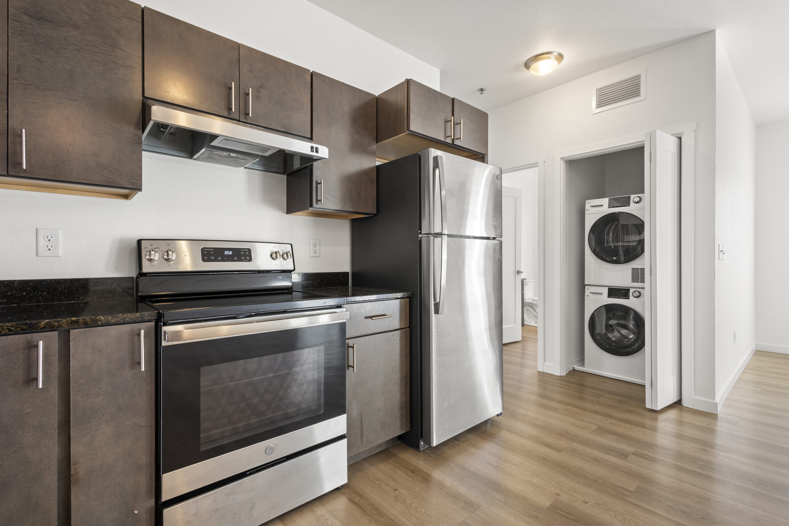 EV charging stations, elevators, in-floor radiant heat, patio/balcony, granite countertops, in-suite washer/dryer, dishwasher are just a few of the amenities available.