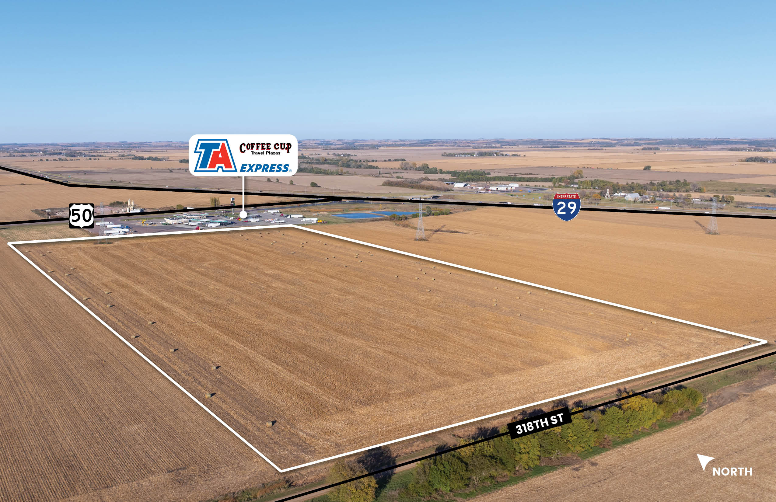 Highly productive farm ground located off Interstate 29 and SD Highway 50, adjacent to the Coffee Cup at the Vermillion exit.